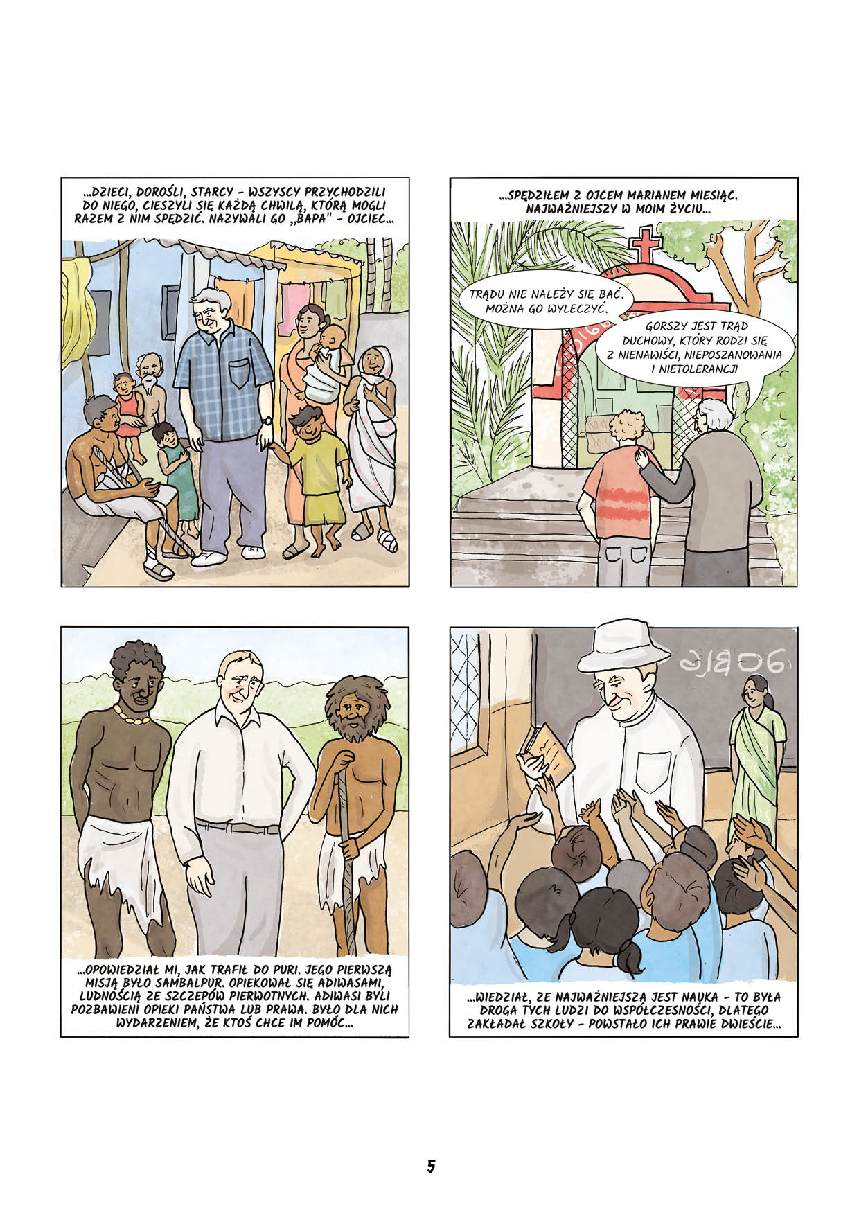 Illustrations and layout for the comic book about the polish missionary Marian Zelazek. Client: Verbinum