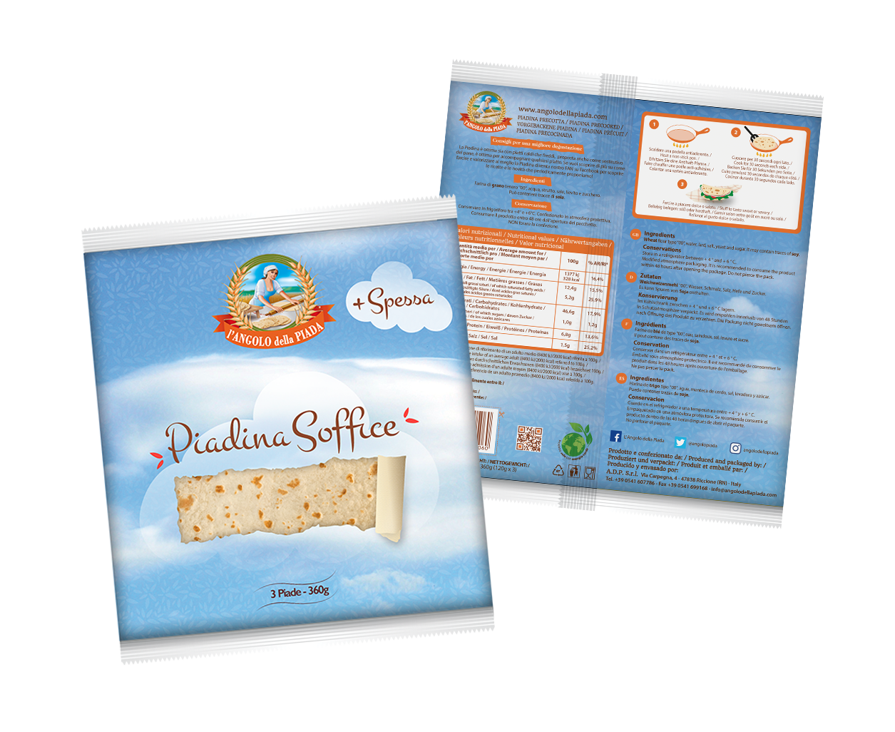 Design of Piadina Packaging Piadina. Client: L' Angolo della Piada