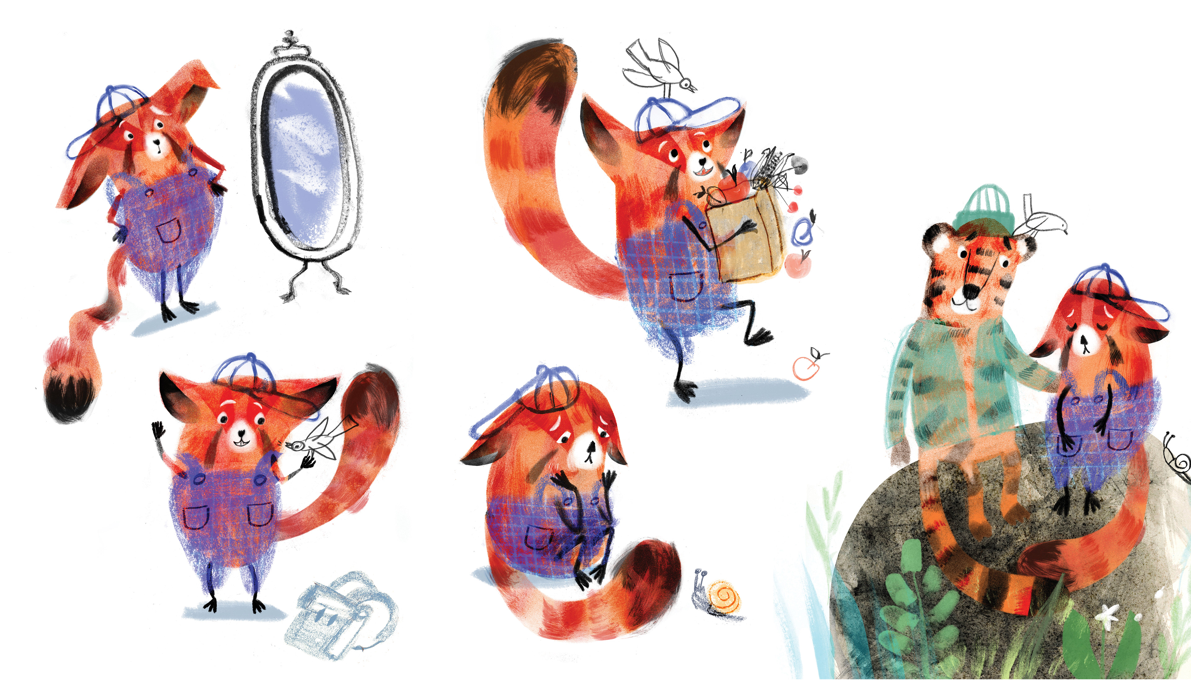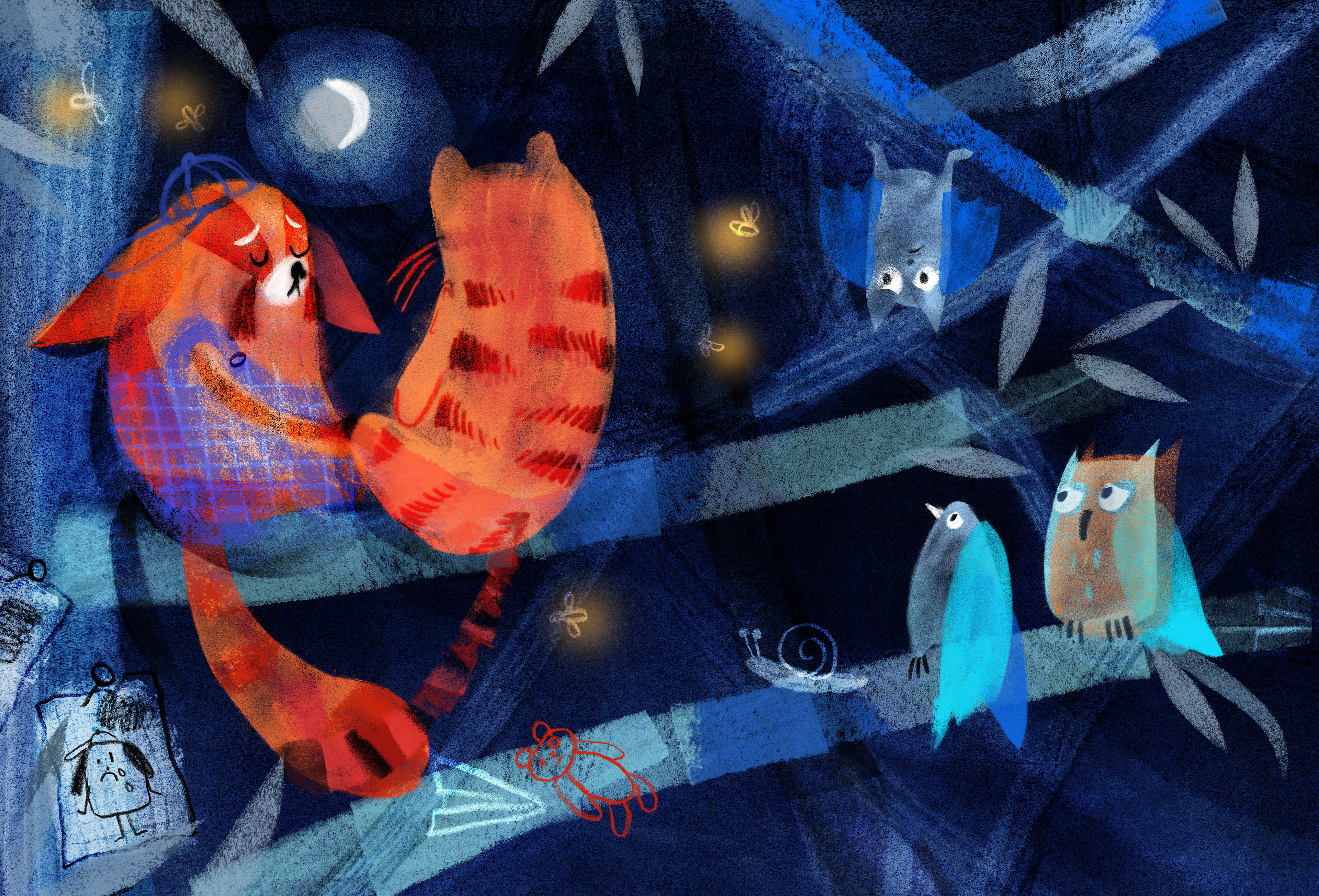 Illustrations for the course Illustrating Children’s Book (Make Art That Sells, 2024). A project only for portfolio purposes. Text and copyright Zoe Tucker | Technique: oil colors, stencils, monotype, pencils, ink, pastels, digital collage
